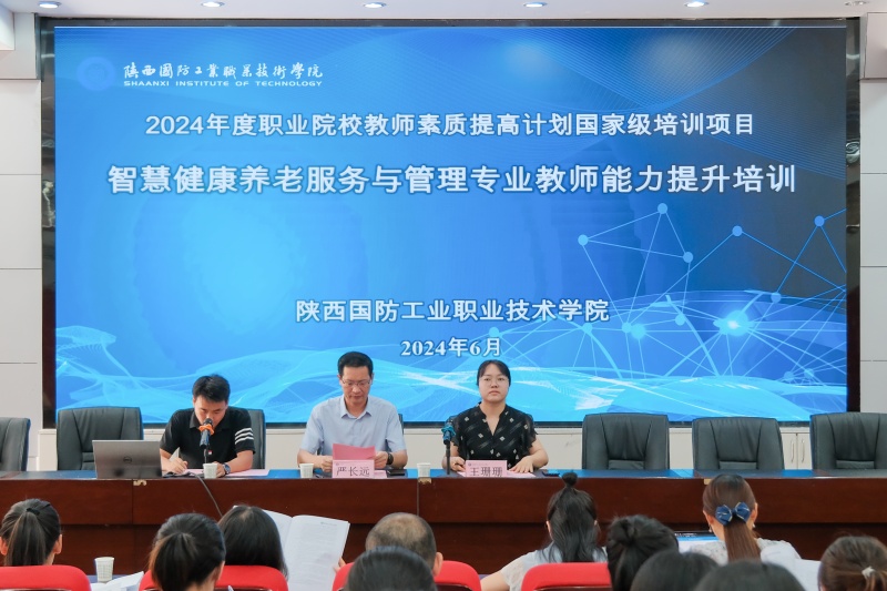 6月24日上午,陕西省2024年度职业院校教师素质提高计划国家级培训项目——智慧健康养老服务与管理专业教师能力提升培训在我校格物楼树人报告厅隆重开班。经济管理学院院长严长远、副院长王珊珊出席开班仪式,全省21所高职院校的48名教师参加此次培训。仪式由教学科张睿主持。