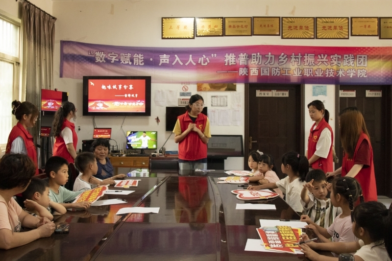 为深入贯彻习近平总书记关于教育的重要论述和关于语言文字工作的重要指示精神,落实教育部、国家乡村振兴局、国家语委印发的《国家通用语言文字普及提升工程和推普助力乡村振兴计划实施方案》,加大国家通用语言文字推广力度,助力乡村振兴战略实施。2024年7月8日—14日陕国职院经济管理学院“数字赋能·声入人心”推普助力乡村振兴实践团在甘亭街道东马营村开展了为期7天的普通话推广活动。通过面向中青年开展“普通话+公共演讲”“普通话+新媒体制作”主题培训,面向青少年学生开展“我是小小推普员”播音发声小课堂、“闪闪的红星”红色故事诵读小课堂、“头脑风暴,妙笔生花”数字绘画小课堂,助力普通话推广,助推乡村振兴发展,受到了当地村民的热烈欢迎和高度反响。