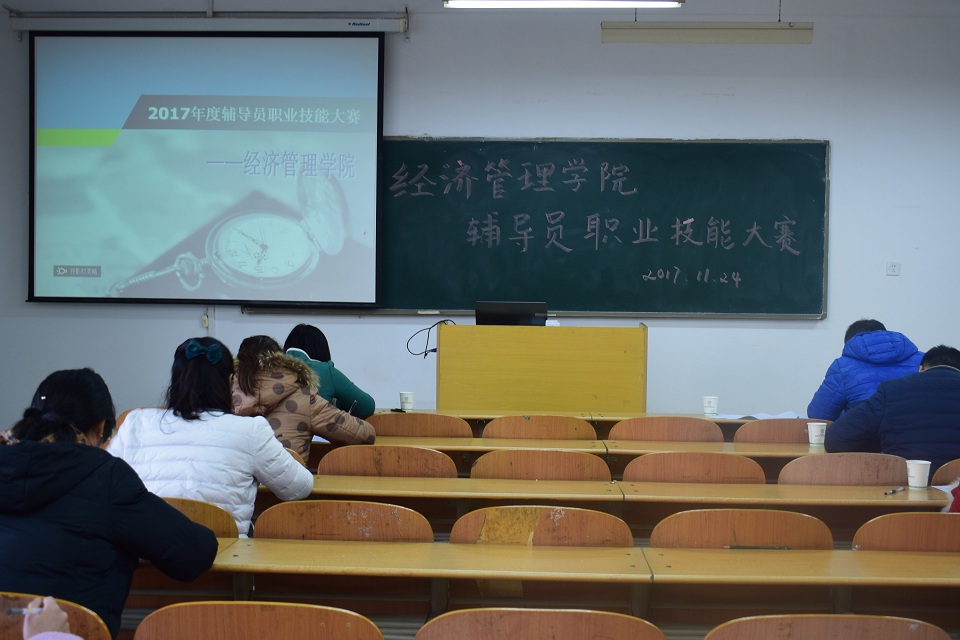 为进一步推进辅导员队伍职业化、专业化建设,同时选拔优秀代表参加校级辅导员技能大赛,经济管理学院于11月24日下午4点10分在教学3楼218教室举办“经济管理学院2017年辅导员职业技能大赛笔试答题”。经济管理学院书记王占祥、学生科科长强卫印等同志担任本次大赛评委。