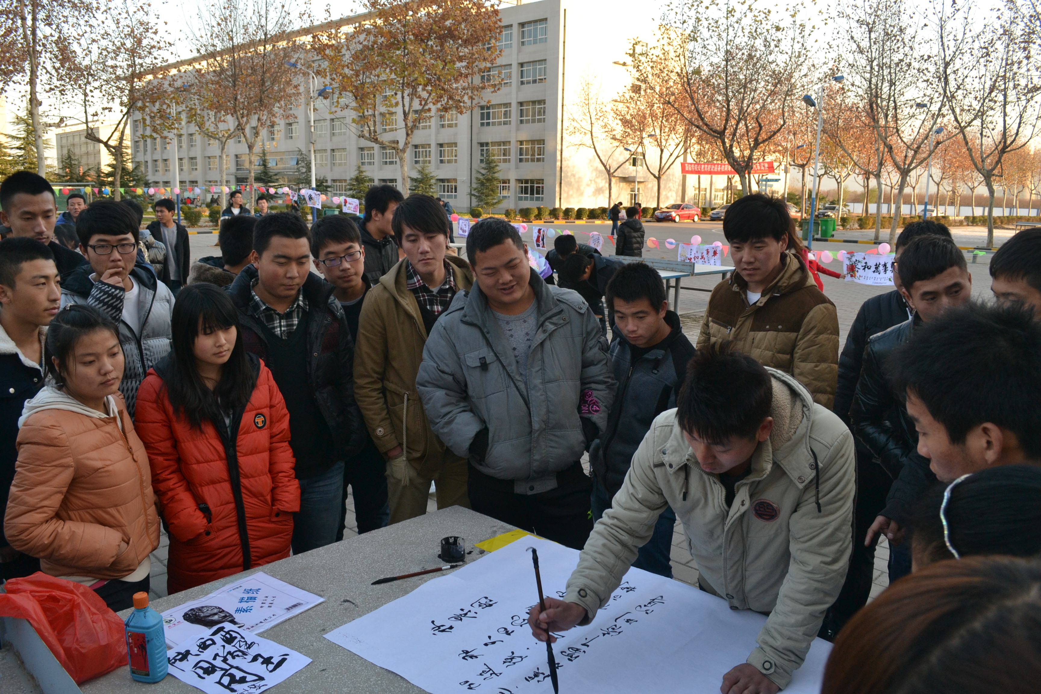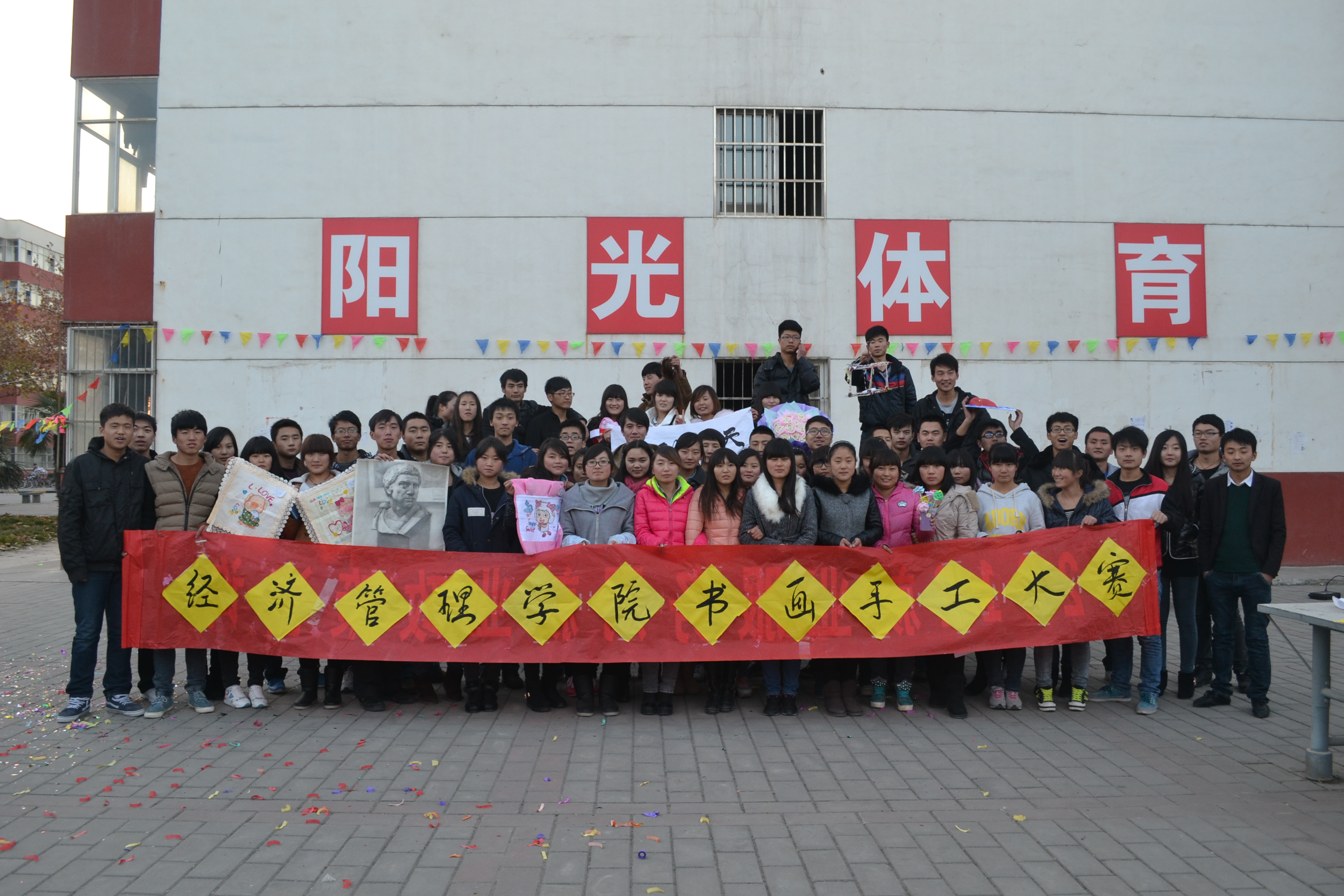 12月9日,经管学院在学生4公寓旁举办了“用艺术的美感悟人生”手工书画展。此次手工书画展分为书法、绘画、手工三部分,共收到作品64幅,其中书法21幅,绘画16幅,手工作品27幅,最终评出优秀作品15幅。
