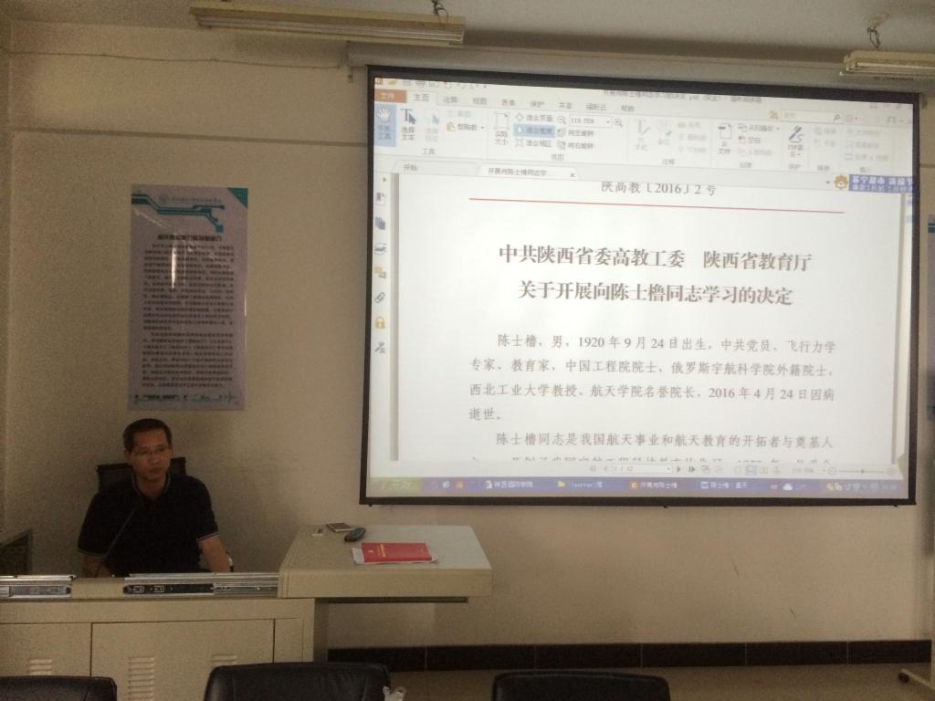 会上,经管党总支书记严长远宣读了《中共陕西省委高教工委 陕西省教育厅关于开展向陈士橹同志学习的决定》(陕高教〔2016〕2号)。同时向全体党员同志介绍了陈士橹同志的生平事迹,他的事迹集中体现了一名优秀共产党员和人民教师的崇高的思想境界和道德情操。