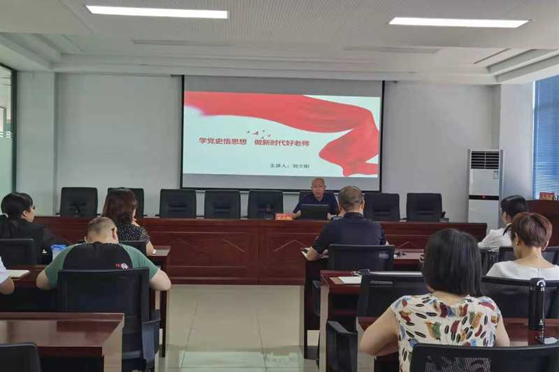 刘少阳同志分别从“从历次党代会的召开学党史”、“从革命精神的传承悟思想”和“践行三牛精神为学校高质量发展开新局谱新篇”三个方面对“学党史悟思想 做新时代好老师”做了深刻讲解。