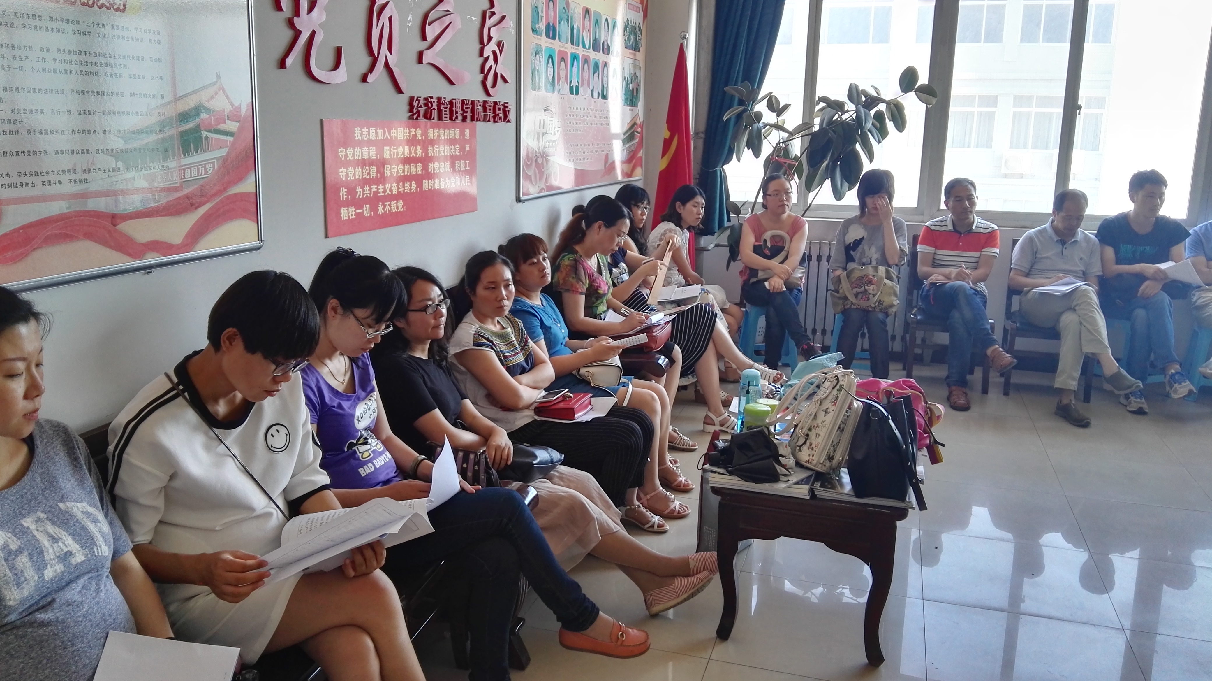 6月16日,下午14:00点,经济管理学院“党总支转正发展大会”在北配楼6—611办公室成功举行,本次大会主要围绕我院9个专业“接受新党员﹑发展预备党员”这一主题而召开,大会由我分院学生党支部书记强卫印老师主持,参加此次大会的还有全分院教职工党员, 大会开始,由申请入党人逐一进行入党志愿书的宣读以及谈谈自己的入党动机。申请入党的同学都真情的表达了对党的向往,对党的忠诚,表示坚定不移跟党走,为党的工作付出自己的力量,为共产主义事业奋斗终生。接着,入党积极分子依次表明入党动机和他们要加入中国共产党的强烈愿望。王占祥院长对发展党员寄予希望,希望他们随时与党中央保持一致,为同学服务,做学生表率,加强自我要求。大会之后依次由各入党介绍人对申请入党人的培养、教育以及政审情况提出意见。所有党员进行讨论并充分发表各自意见,申请人再次表明态度后,拥有表决权的党员对接收党员与预备党员进行了举手表决,最终通过了转正党员转为正式党员,发展对象正式成为预备党员。学生党支部书记强卫印老师对大会进行了总结,并给本批发展党员讲解入党志愿书的填写要求,注意事项。至此,大会圆满落幕。 此次大会,我分院党总支注入了新鲜的血液,进一步扩大了党员队伍,对我分院党员接收工作是一次巨大的推进。新党员与新预备党员也将以他们良好的风貌,发挥党员的先锋模范作用。