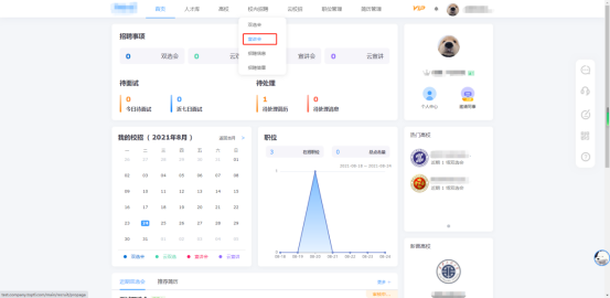 (一)登录后点击顶部导航栏的“校内招聘”,再点击弹出来的“双选会”。