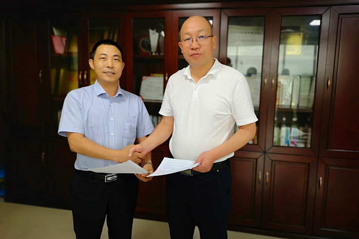 随后,双方签署了校企合作框架协议。杨万国董事长陪同刘少阳副书记一行参观了企业。