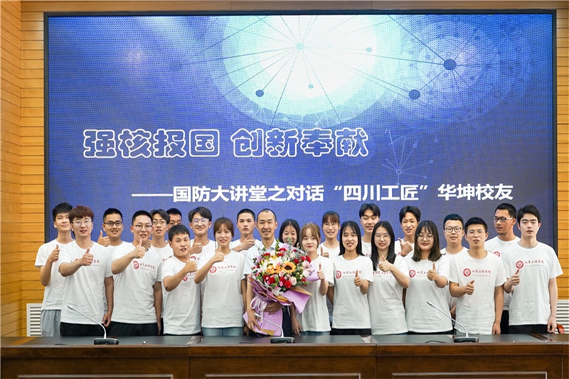 在“对话四川工匠,弘扬劳模精神”华坤校友座谈会。副校长张永军致欢迎辞,对华坤校友返校表示热烈的欢迎,对他取得的成绩表示衷心的祝贺,希望广大师生以华坤为榜样,传承和弘扬工匠精神、劳模精神以及“两弹”精神。