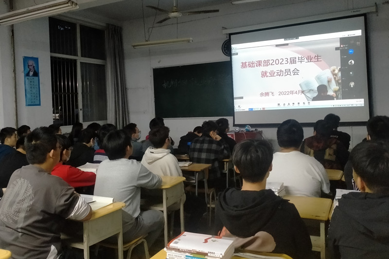 根据我校就业中心关于2023届毕业生就业工作的相关安排并结合我部实际,为更高效服务毕业生,确保毕业生就业工作顺利开展,基础课部于2022年4月21日晚开展2023届毕业生就业动员,基础课党总支书记、全体辅导员、518级全体学生参加就业动员会。动员会以线上动员的方式开展,校内学生在本班级教室内参加,校外学生通过网络线上观看,本次动员会由基础课部学生科长余腾飞老师主讲。