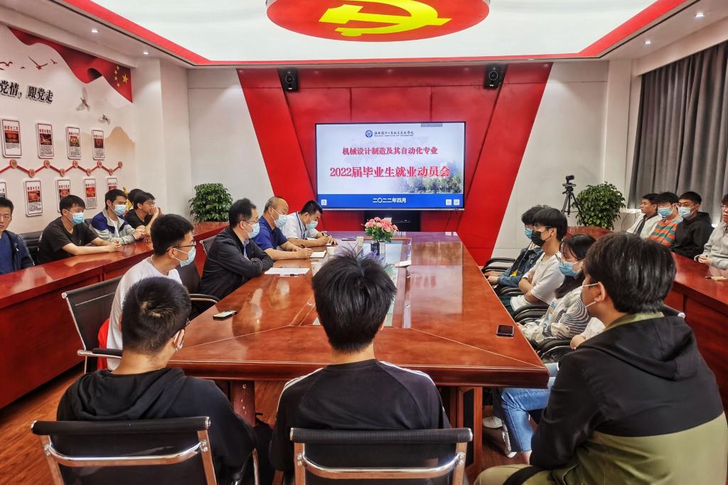 为全面掌握机械设计制造及自动化专业2022届本科班就业情况,更好的解决本科班毕业生在就业过程中存在的问题。4月25日下午,智能制造学院在10-305组织召开了2022届本科班毕业生就业动员会。招生就业处处长王广林,团委书记、必威app安卓版无弹窗部副部长、机自2001班辅导员张钊参加会议。会议由智能制造学院党总支书记白福民主持。