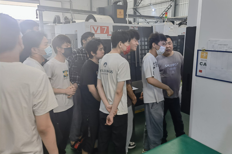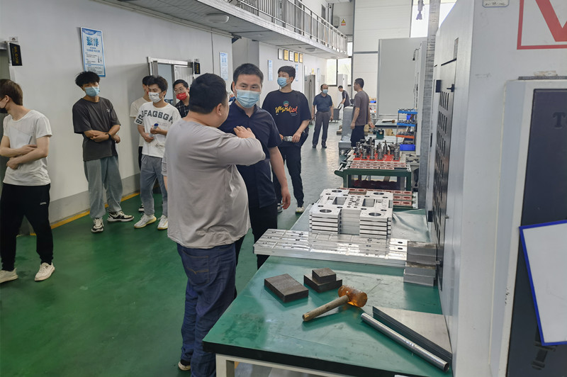 基础课党总支书记权华和企业人事经理深入交谈,并向企业介绍毕业生的情况,企业工作人员带领师生参观操作间,对岗位要求、设备操作、工资待遇等方面进行细致的讲解,未就业学生在详细了解企业之后组织现场面试和上机实操。