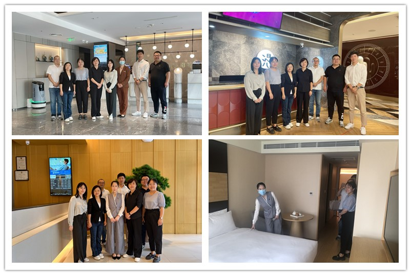交流会上,双方就订单班、课程体系设置、人才培养定位、学生就业等方面进行了研讨,随后走访了华住集团旗下中高端酒店品牌漫心酒店、桔子水晶酒店、citigo酒店和全季酒店,为后期华住英才班进一步合作打下基础。学院老师对在全季酒店就业的学生进行了慰问和访谈,连锁经营与管理专业2020级学生秦淑玲向各位老师介绍了酒店和不同种类的房间,展示了自己良好的业务能力,她表示在全季酒店的工作收获很大,店长和同事对她非常关心,工作氛围良好,她十分满意。