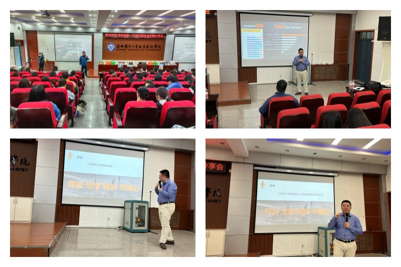 齐总讲座的主题是《打破·重构——思维模式升级 解锁职场密码》。首先从当前大学生毕业后面临什么样的就业环境和形势进行分析,帮助学生了解当前毕业人数突破新高、企业招聘需求收缩导致的职场供需矛盾。然后从企业的角度,通过丰富的案例,向学生分析了就业市场人才需求的变化,企业招聘的要求和应聘成功的关键因素,帮助学生更好地进行求职准备。最后从职场新人如果快速获得大家的认可、在企业中如何进行有效沟通等方面,向同学们提出了在职场中工作要主动积极、学会展现个人魅力、尊重别人、学会思考等建议。报告会上,学生们积极互动,现场掌声雷动,气氛热烈。