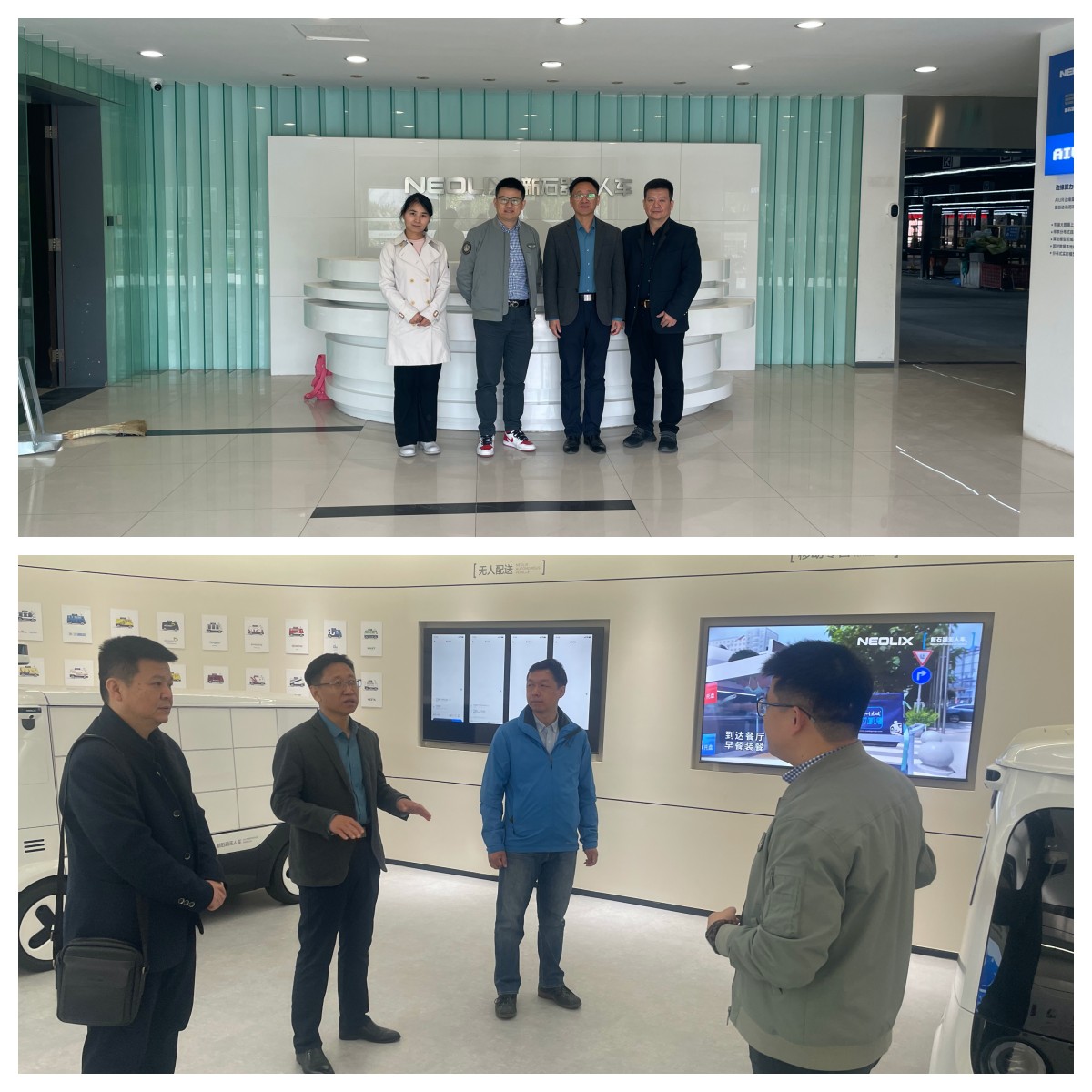 孟繁增副校长先后向企业介绍了学校的发展历史,办学特色,专业设置,人才共同培养,校企联合开展专精特新产业学院人才培养规划,设计学生就业岗位和未来毕业生就业方向。新石器慧通(北京)科技有限公司市场副总裁刘明敏对孟繁增一行的到来表示热烈欢迎,他介绍了企业的基本情况,新石器慧通(北京)科技有限公司于2018年02月13日成立,是无人车的研发、制造及服务提供商。新石器科技致力于推动无人车服务于智慧城市建设与运营,是兼顾科技与服务的非载人的智能服务型无人车,集成了“车”、“服务机器人”、“AI大脑”的三重优势,兼备L4级自动驾驶及服务机器人AI能力的车规级平台,专注于提供物流运输、无人配送等的移动空间服务。其中重点强调了新石器无人车在无人车领域取得的最新成果,刘明敏带领孟繁增一行参观了新石器无人生态展厅,实地考察永昌路沿线无人车在道路上配送运营情况,考察新石器无人车智能物流共配中心,并进行现场交流座谈。教育事业部姜勇就无人车行业对于岗位设置以及该行业对人才的需求情况进行的介绍,双方就人才培养和就业达成了协议。