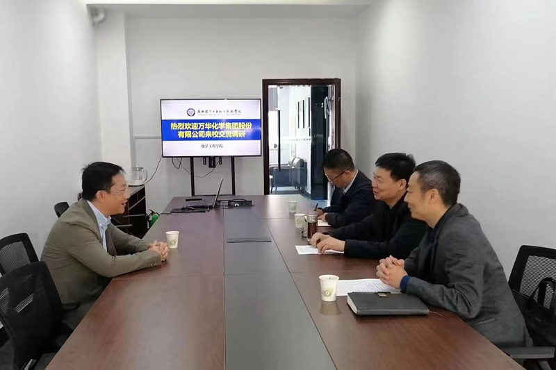 2023年4月17日,万华化学集团股份限公司集团人事经理白朔一行来我校洽谈校企合作、人才培养和校园招聘等事宜,我校党委书记张卫平、化学工程学院党总支书记孟龙、化学工程学院院长张军科等与企业进行了深入交流。