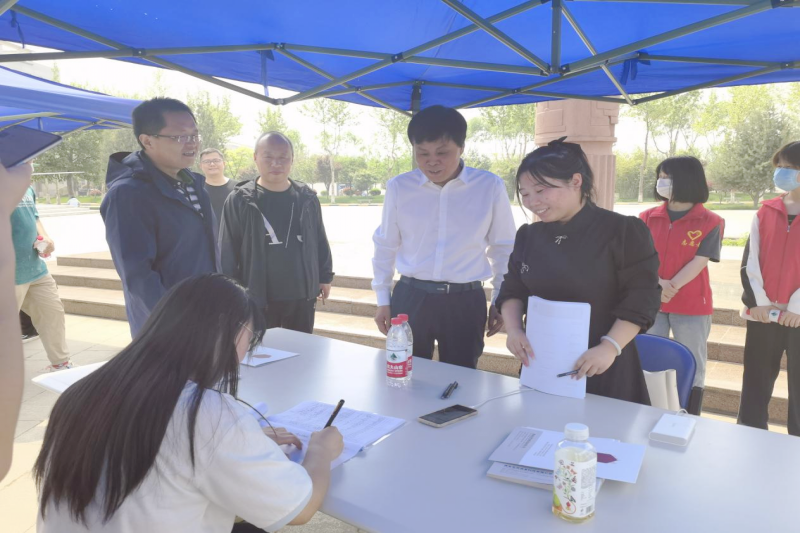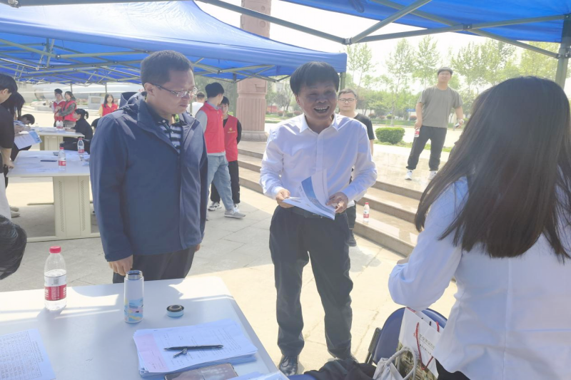 为全面贯彻落实教育部“春季促就业攻坚行动”,抢抓春招关键期,全力促进毕业生充分、高质量就业,4月18日,我校招生就业处主办、计算机与软件学院承办的2023年春季计算机类专业毕业生招聘会在砺剑广场成功举办。校长刘敏涵来到招聘会现场,与参会企业和学生亲切交流,对企业来校招聘表示感谢,仔细了解用人单位的人才需求情况,询问毕业生的就业意愿与求职进展。