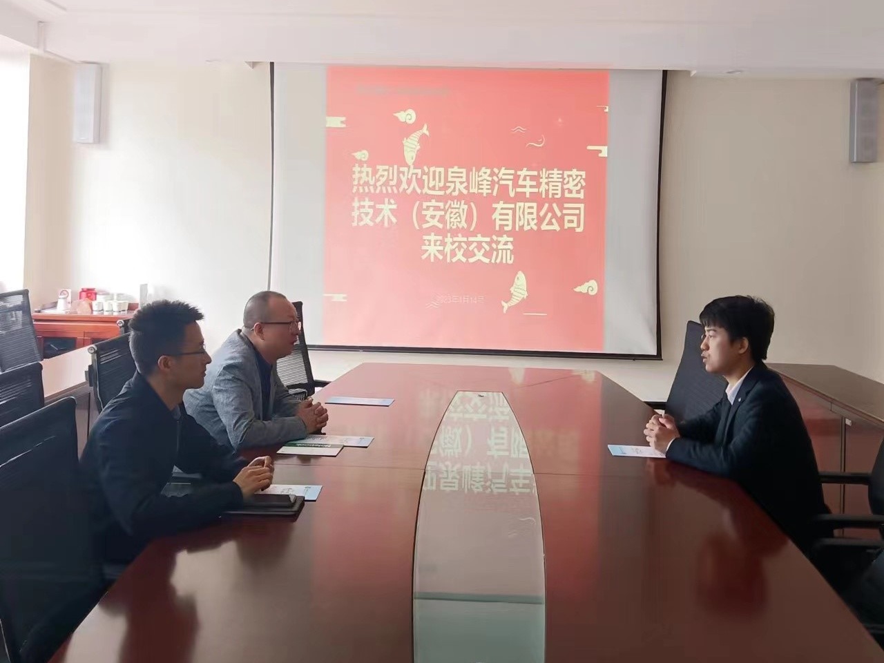 赵鹏书记对泉峰汽车精密技术(安徽)有限公司的苏经理来校交流、招聘表示热烈欢迎。苏经理详细介绍了泉峰汽车精密技术(安徽)有限公司的发展历程和主要业务,并对本次毕业生招聘的专业需求进行详细说明,介绍了企业文化和员工福利待遇以及行业、岗位的前景。赵书记对我校的专业类别和毕业生基本情况进行了详细介绍,并希望能够进一步加强与企业的招聘合作和人才培养,努力开拓更多的毕业生就业岗位。