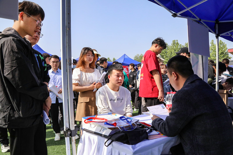 双选会现场气氛热烈,会场内外前来参会的学生络绎不绝,同学们穿梭在不同展位,仔细浏览着展板,主动上前和心仪的用人单位交谈,招聘会现场井然有序,气氛热烈。本次双选会设置了简历门诊、西安市就业政策咨询、大学生应征入伍宣传等展位,校内外就业指导老师为毕业生提供一对一指导服务,为毕业生解答就业创业方面的疑惑,助力毕业生打开职场大门,受到与会学生的热烈响应。
