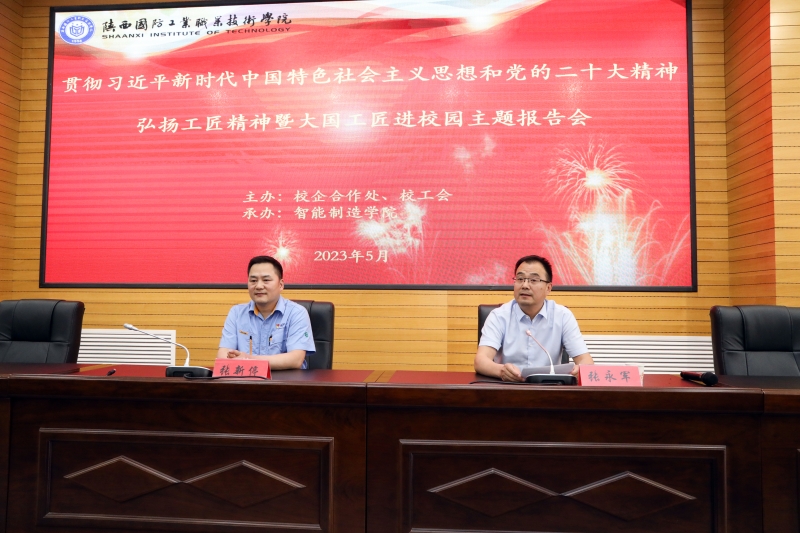为贯彻习近平新时代中国特色社会主义思想和党的二十大精神,在全校崇尚技能,弘扬工匠精神,激发全体师生创新热情,5月16日下午,在北校区教四报告厅大国工匠张新停通过专题报告,绝活展示向师生们传递了追求极致的精神风范以及为国家国防科技工业事业发展奋斗终生的匠心。副校长张永军主持会议,校企合作处、校工会、教务处主要领导,教师代表,智能制造学院学生代表300余人参加了本次会议。