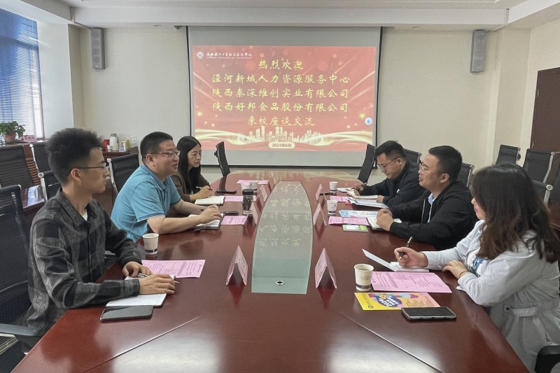 6月1日上午,泾河新城人力资源服务中心宁柯,陕西秦深维创实业有限公司总裁助理杨培培,陕西好邦食品股份有限公司人事经理王珂强一行来我校进行毕业生就业工作洽谈。我校毕业生就业指导服务中心主任王东、智能制造学院学生科长樊英鸽、电子信息学院学生科长董永辉、人工智能学院学生科长刘沛静一同参加了会议。