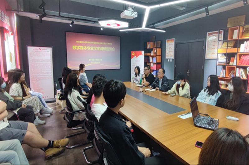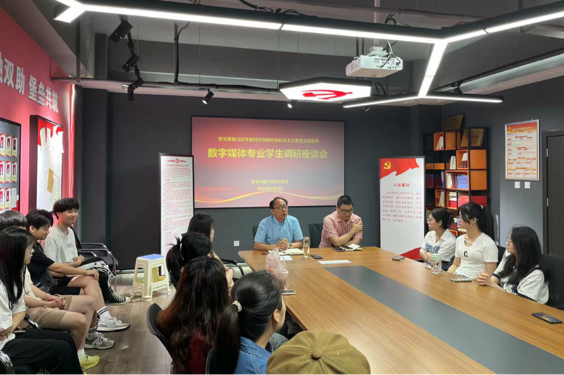 为深入开展学习贯彻习近平新时代中国特色社会主义思想主题教育,大兴调查研究之风,确保主题教育取得实效,2023年6月5日—8日,艺术与设计学院党总支书记常继红与学生科长高翔深入2024届数字媒体技术专业各班级开展学习贯彻习近平新时代中国特色社会主义思想主题教育专题调研座谈会,主要围绕“提高数字媒体技术专业就业质量”开展调研,艺术与设计学院数字媒体技术专业2024届全体学生和辅导员老师参加了会议,会议由常继红主持。