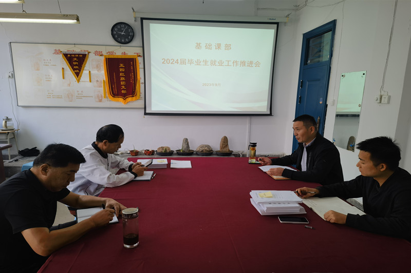 为全面推进基础课部2024届毕业生就业工作,引导毕业生树立正确的就业观念,提高就业积极性和主动性,做实做细就业指导服务,实现毕业生更充分更高质量就业,2023年9月22日基础课部组织召开2024届毕业生就业工作推进会,会议有学生科长余腾飞主持,党总支书记权华和2024届毕业班辅导员参会。