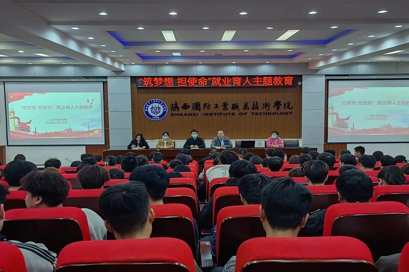 为进一步强化“就业育人”实效,加强就业指导服务,引导毕业生树立积极求职心态,尽快投身求职行动,尽早落实毕业去向,2024年3月28日晚,电子信息学院在教二报告厅开展了“筑梦想 担使命”就业育人主题教育活动,活动围绕“价值观、就业观、择业观”和就业工作注意事项对2025届全体毕业生进行了就业培训与动员。参加此次会议的有电子信息学院党总支书记赵鹏,学生科长董永辉,2025届毕业班辅导员,以及全体2025届毕业生。