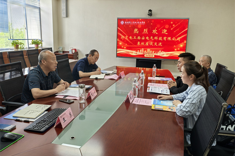5月8日上午,特变电工西安电气科技有限公司来校开展就业合作交流座谈,特变电工西安电气科技有限公司副总张志龙、HRBP吴磊、技术主管陈鹏,我校招生就业处处长王广林、人工智能学院党总支书记张双琦、就业指导服务中心主任王东参加了此次座谈会。