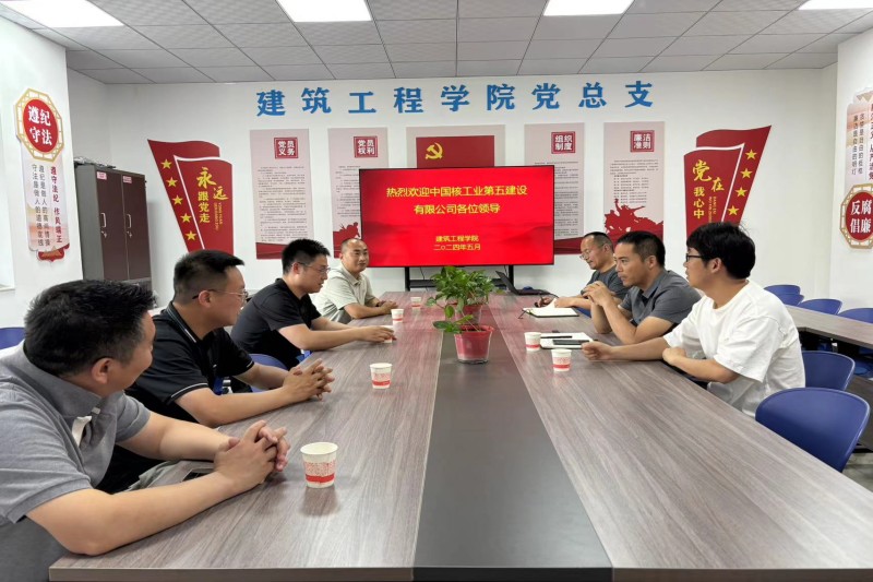 5月22日下午,中国核工业第五建设有限公司人力资源部郭主任一行5人来校进行交流。建筑工程学院党总支书记强卫印、建筑工程学院相关老师等一同参会。