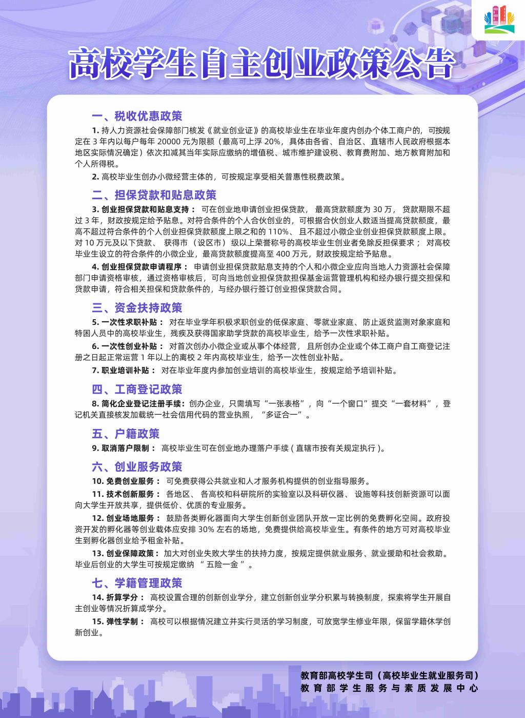 高校学生自主创业政策公告
