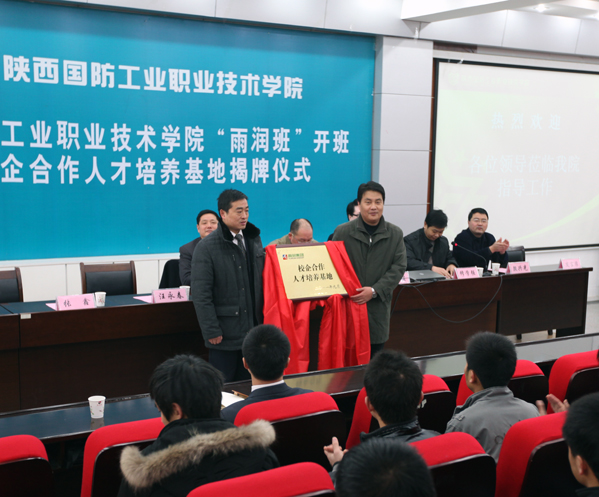 仪式由机电工程学院院长修学强主持,校企双方代表,刘少阳、赵启满在揭牌仪式上讲话,张鑫和汪永春共同为“校企合作人才培养基地”揭牌,王亮做了企业文化讲座。“雨润订单班”班主任徐腾、学生代表秋文龙发言。