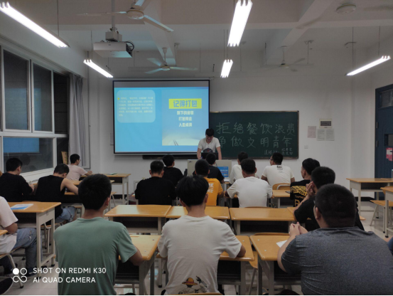 2020年9月6日晚自习,建热学院组织全体学生召开“拒绝餐饮浪费行为 争做文明节俭青年”的主题团日活动,