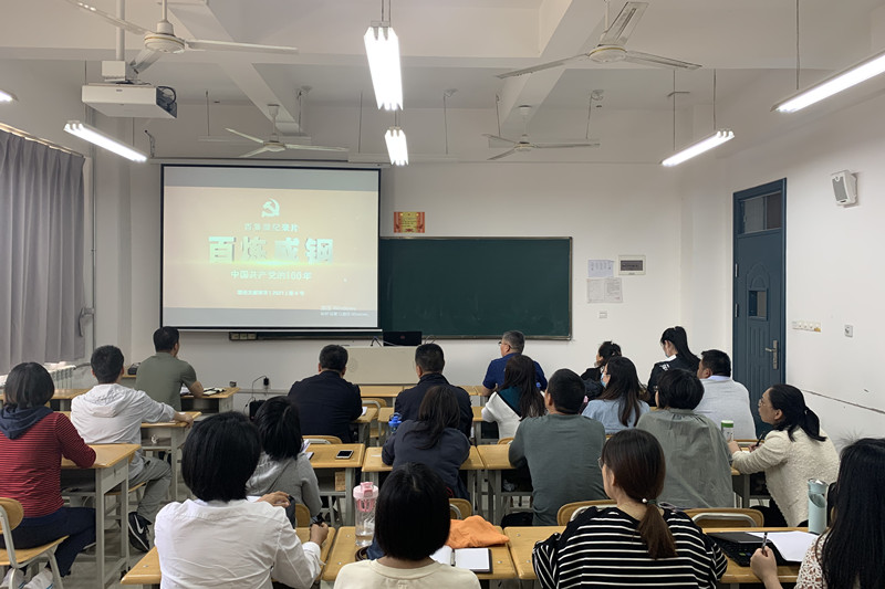 会上,全体教职工首先观看了微纪录片《百炼成钢:中国共产党的100年》;随后,强书记带领大家学习了《中国共产党统一战线工作条例》、《新时代高校教师职业行为十项准则》、《陕西省高校教师师德失范行为处理办法(试行)》、“陕西省教育厅关于对9起违反教师职业行为十项准则典型问题的通报”等内容;最后,纪检委员王振峰带领大家学习了廉政警示教育典型案例。