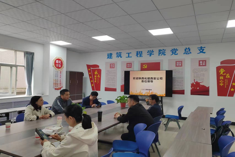 4月1日,陕西化建有限责任公司西安公司人事部长王鲜玲一行来校进行交流座谈,建筑工程学院党总支书记强卫印、建筑工程学院相关老师等一同参会。