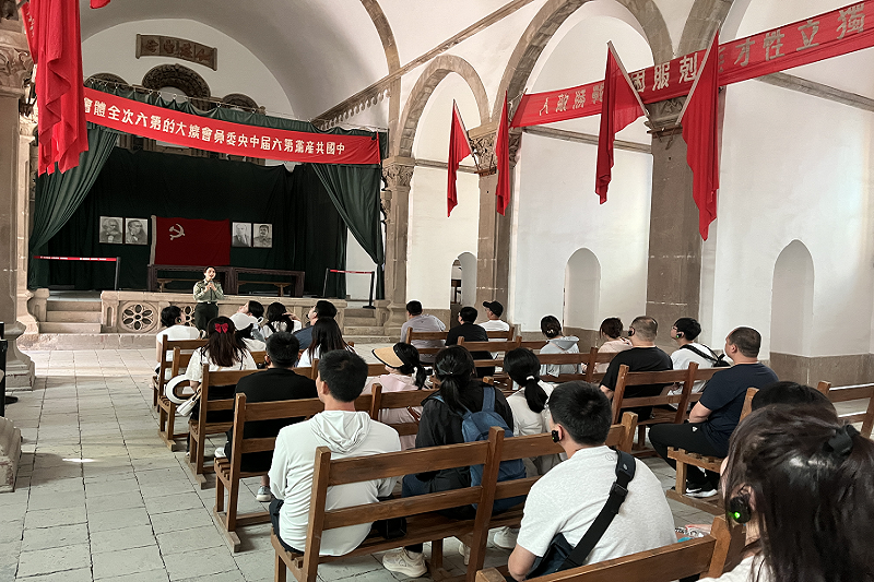 主题教育期间,青年教师先后走进凤凰山、枣园、宝塔山、杨家岭革命旧址,参观了延安鲁迅艺术学院旧址和延安革命纪念馆,认真学习了“一个高尚的人,一个纯粹的人,一个有道德的人,一个脱离了低级趣味的人,一个有益于人民的人”的白求恩精神。在宝塔山,青年党员教师和部分思想积极教师重温了入党誓词。在梁家河,青年教师们参观了梁家河村史馆、知青旧址、沼气池、知青井等,聆听了《习近平在梁家河的为民情怀与实干担当》。