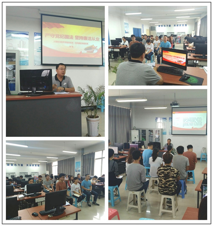 9月22日下午,计算机与软件学院党总支组织全体师生党员开展“两学一做”学习教育常态化制度化专题党课,此次党课以“严守党纪国法、坚持廉洁从业”为主题,由计算机与软件学院党总支书记张弛主讲。