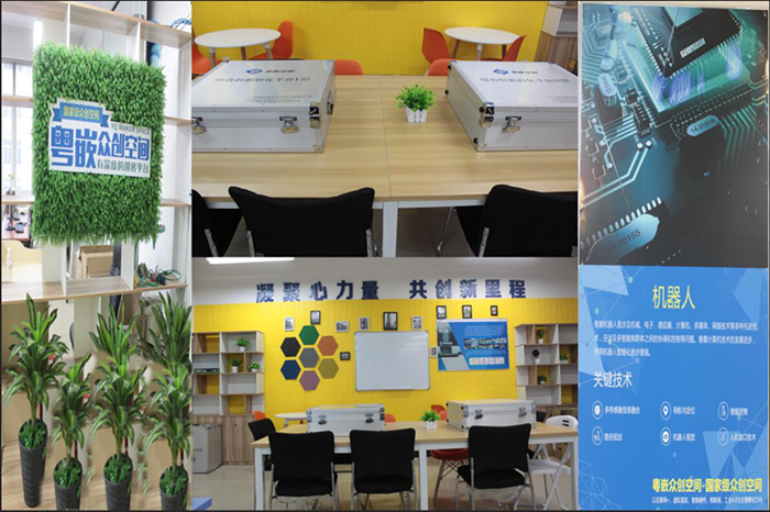 2017年12月,在学校领导的统一部署下,在校企业合作处的大力协调下,在计算机学院的努力下,计算机与广州粤嵌通信科技股份有限公司签订校企合作协议,公司投资37.7万元为我院新建粤嵌国家级众创空间。2018年1月计算机学院的部分同事利用寒假加班加点搬迁实训室,配合公司进行众创空间的施工,经过近半个月的奋战,完成了粤嵌国家级众创空间的新建工作,优美的创新创业环境,浓厚的创新创业氛围,为创新创业实践教育奠定了良好的基础环境和条件。