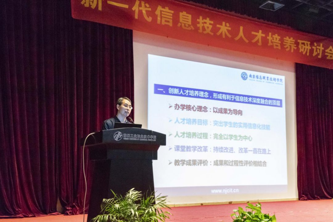 苏州工业职业技术学院副院长苏霄飞做了题为《深化产教融合 建设信息技术专业发展新生态》的报告,指出苏州工业职业技术学院将通过新一代信息技术支撑相关专业发展,主攻智能制造和工业互联网专业群建设,打造产教融合校企合作人才培养高地,建成与苏州经济发展水平相匹配的高职院校。