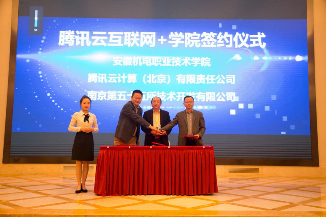 安徽机电职业技术学院、腾讯云计算机北京有限公司、南京第五十五所技术开发有限公司签约腾讯云互联网+学院