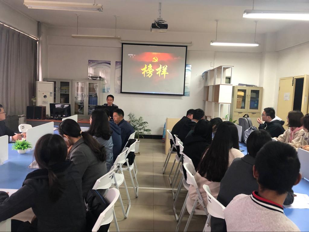 2019年10月22日下午4:10,计算机与软件学院在8-503集中观看“不忘初心、牢记使命”系列纪录片《榜样》。计算机与软件学院党总支书记潘冬,院长郭立文,副院长王勃等党员教师以及学生党员参加了此次主题教育。