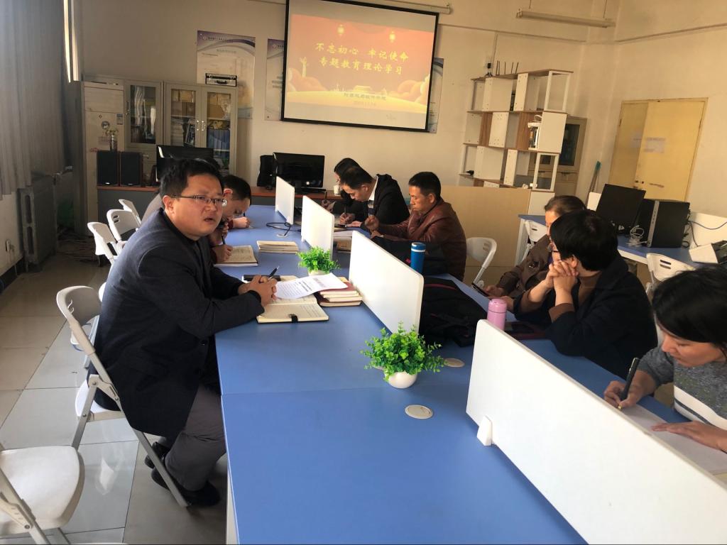 计算机教师党支部书记刘向锋带领大家学习了《习近平关于“不忘初心、牢记使命”论述摘编》第二部分“新时代中国共产党的历史使命”。行百里者半九十,中华民族伟大复兴,绝不是轻轻松松、敲锣打鼓就能实现的,全党必须准备付出更为艰巨的,更为艰苦地努力。到2050年,我们要把中国建成富强民主文明和谐美丽的社会主义现代化强国。