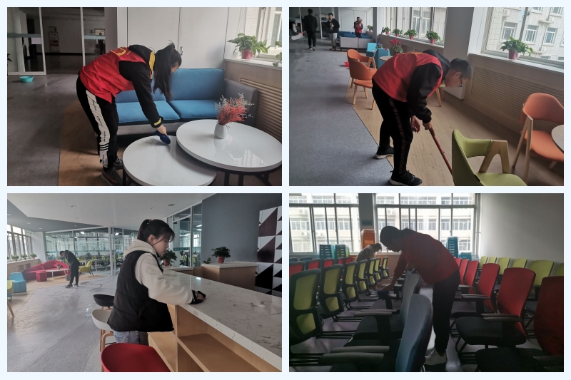 一批入党积极分子清扫了校园的落叶,同学们手拿扫把、簸箕热情地投入到清扫工作中来,整个过程持续了一个小时,清理完成后看到干净的校园环境,学生们都洋溢出了幸福的笑容。另一批前往计算机与软件学院工匠工坊,鼓足干劲、分工合作,积极清扫地面、桌面卫生,将桌椅摆放整齐、擦拭干净,工坊内焕然一新。最后,入党积极分子集中分享了本次活动经验与体会。