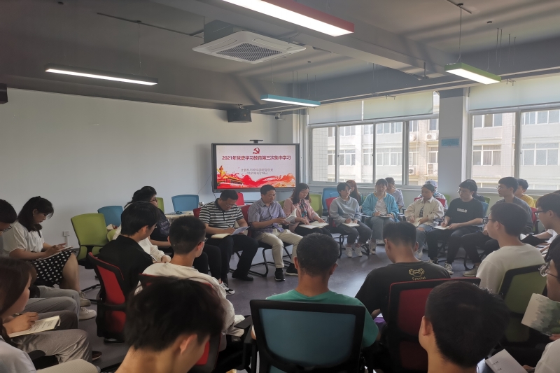 5月19日,计算机与软件学院党总支组织全体师生党员在腾讯云宣讲厅开展第三次集中学习,读文献、学党史,学习活动由党总支书记王勃主持。
