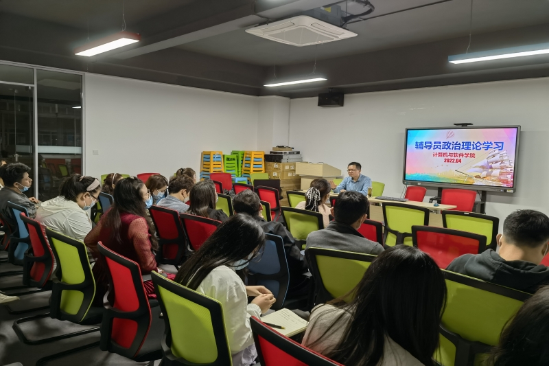 4月27日下午,计算机与软件学院组织全体辅导员在腾讯云宣讲厅开展集中理论学习,学习由党总支书记王勃主持。