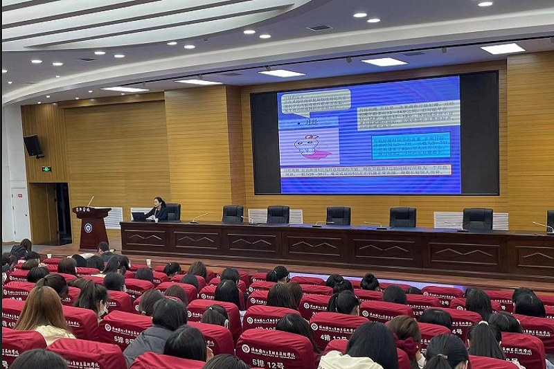 为了帮助女大学生树立正确的自我保护意识,培养高尚的情操,促进女生健康自信成长。2023年4月6日晚上7:30计算机与软件学院在教学四号楼报告厅举办“珍爱青春 不负韶华”的女生专题讲座。计算机与软件学院专兼职辅导员和近300名女生参加了此次讲座,本次讲座特邀鄠邑区惠安医院的副主任医师蒋红霞讲授。