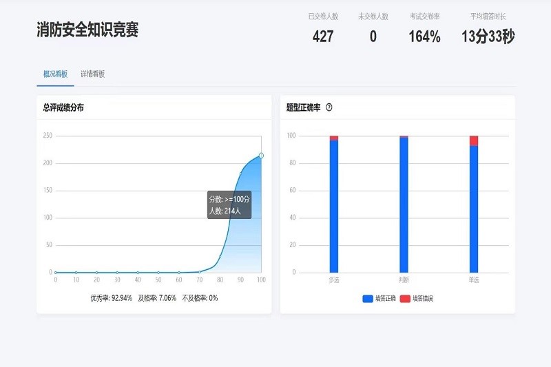 为夯实学生的消防知识,计算机与软件学院通过“易班”平台开展“消防安全知识竞赛”,共计427名同学参加了竞赛,其中217名学生获得满分。