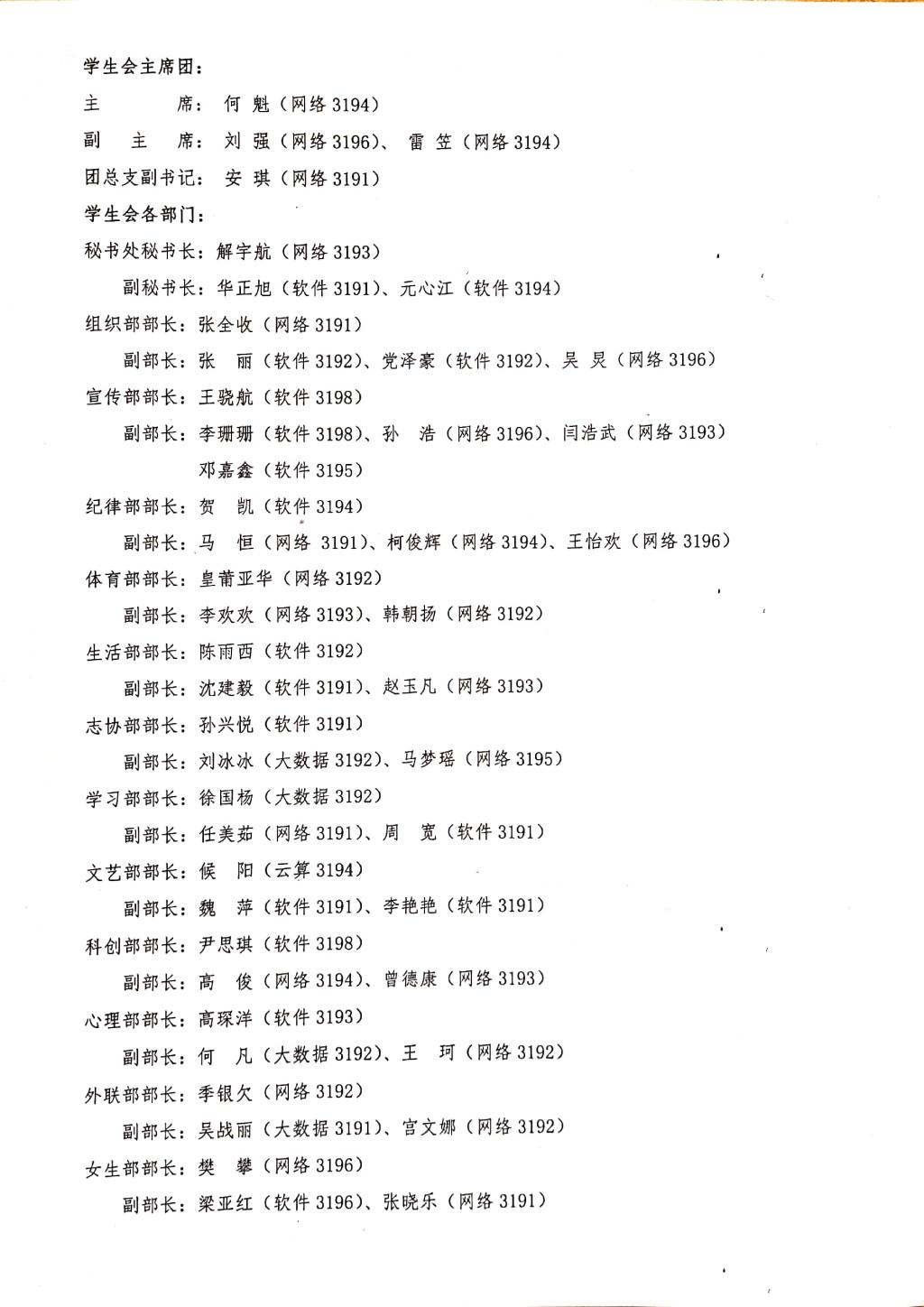 附:计算机与软件学院第四届学生会干部拟聘任名单