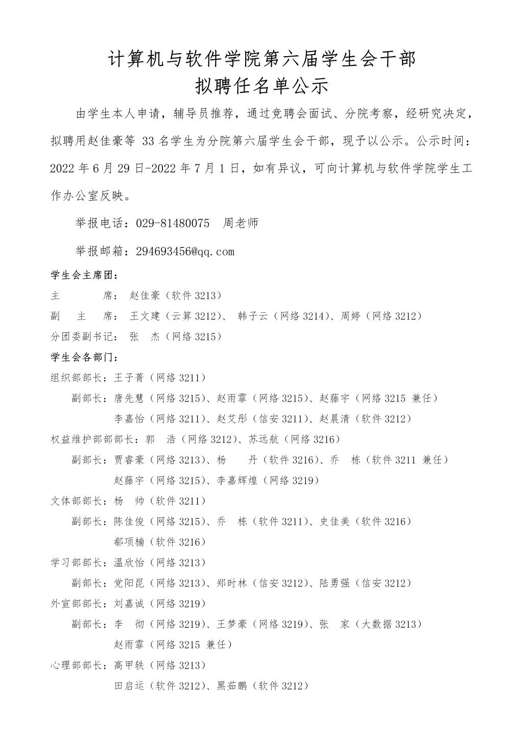 上一条:关于计算机与软件学院2021-2022学年先进班集体、学习标兵、三好学生、学生干部标兵、优秀学生干部推荐名单公示