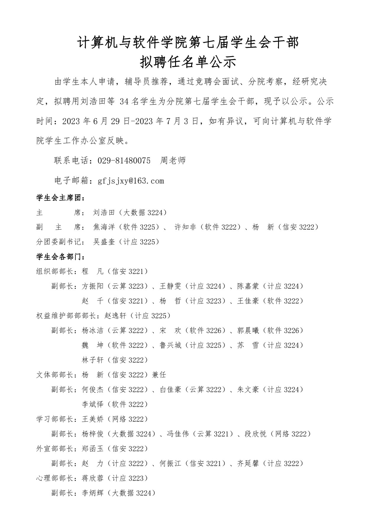 上一条:关于计算机与软件学院2022-2023学年先进班集体、学习标兵、三好学生、学生干部标兵、优秀学生干部推荐名单公示