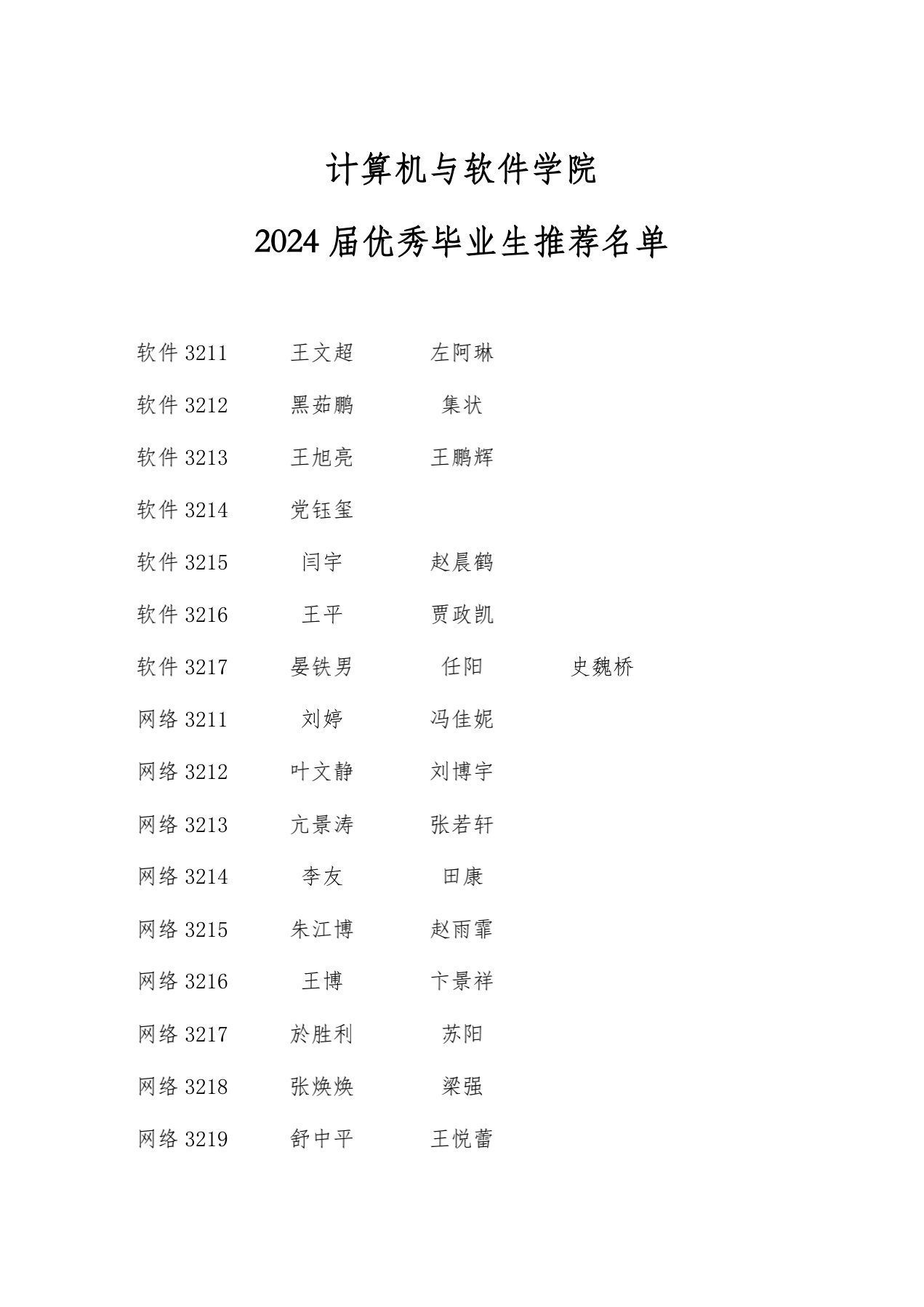 附表:计算机与软件学院2024届校级优秀毕业生推荐名单