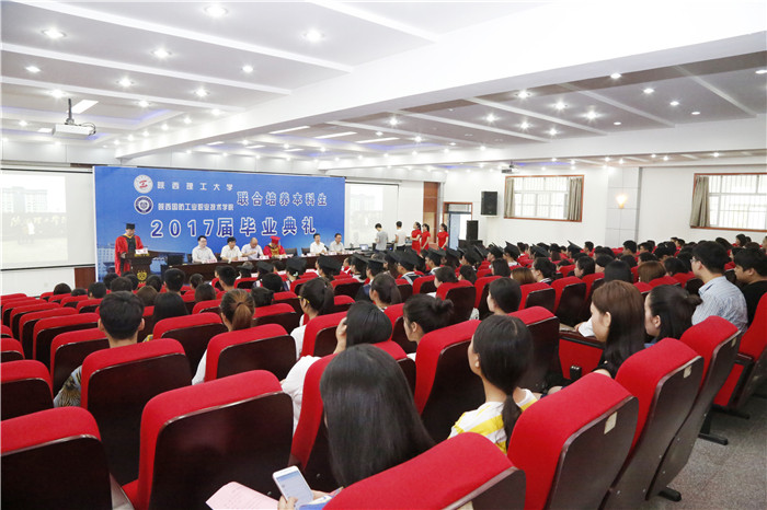 7月5日上午,我校与陕西理工大学联办的首届本科生毕业典礼暨学位授予仪式在北校区学术报告厅隆重举行。陕西理工大学副校长冯小明、教务处处长王忠、招生就业处副处长赵华,我校党政领导张卫平、刘少阳、王明哲、刘敏涵、杨聪、全卫强,相关分院院长、书记,各职能部门负责人、教师代表、在校学生代表及2017届全体毕业生参加。首届本科毕业典礼由我校党委副书记王明哲主持。