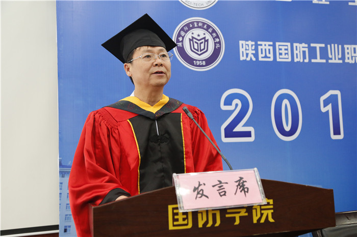 我校党委书记张卫平代表全校师生员工,向圆满完成本科学业的毕业生表示热烈祝贺!他说,今天是国防学院历史上重要的一天,作为第一批本科生,你们的毕业代表了学校发展的又一里程碑,你们是学校的荣誉和骄傲!他对毕业生提出了几点期望:一是把人做好,诚信友善,勇于担当;二是把事干好,大处着眼,小处入手,锲而不舍;三是把梦圆好,大胆有梦、努力追梦。最后他希望同学们记住,母校永远关注你们,祝福你们,欢迎大家常回家看看!